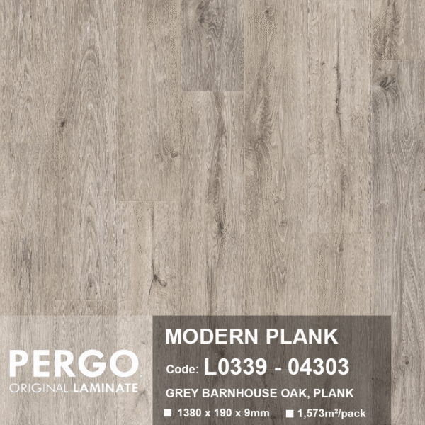 MODERN PLANK 9MM 04303 là một trong những mẫu cao cấp thuộc dòng Modern Plank của thương hiệu Pergo, sản xuất tại Bỉ bởi tập đoàn UNILIN. Với sắc vân gỗ trung tính, công nghệ chống nước AquaSafe và lớp phủ TitanX™ siêu bền, sản phẩm mang lại trải nghiệm sử dụng tối ưu cho không gian sống hiện đại.